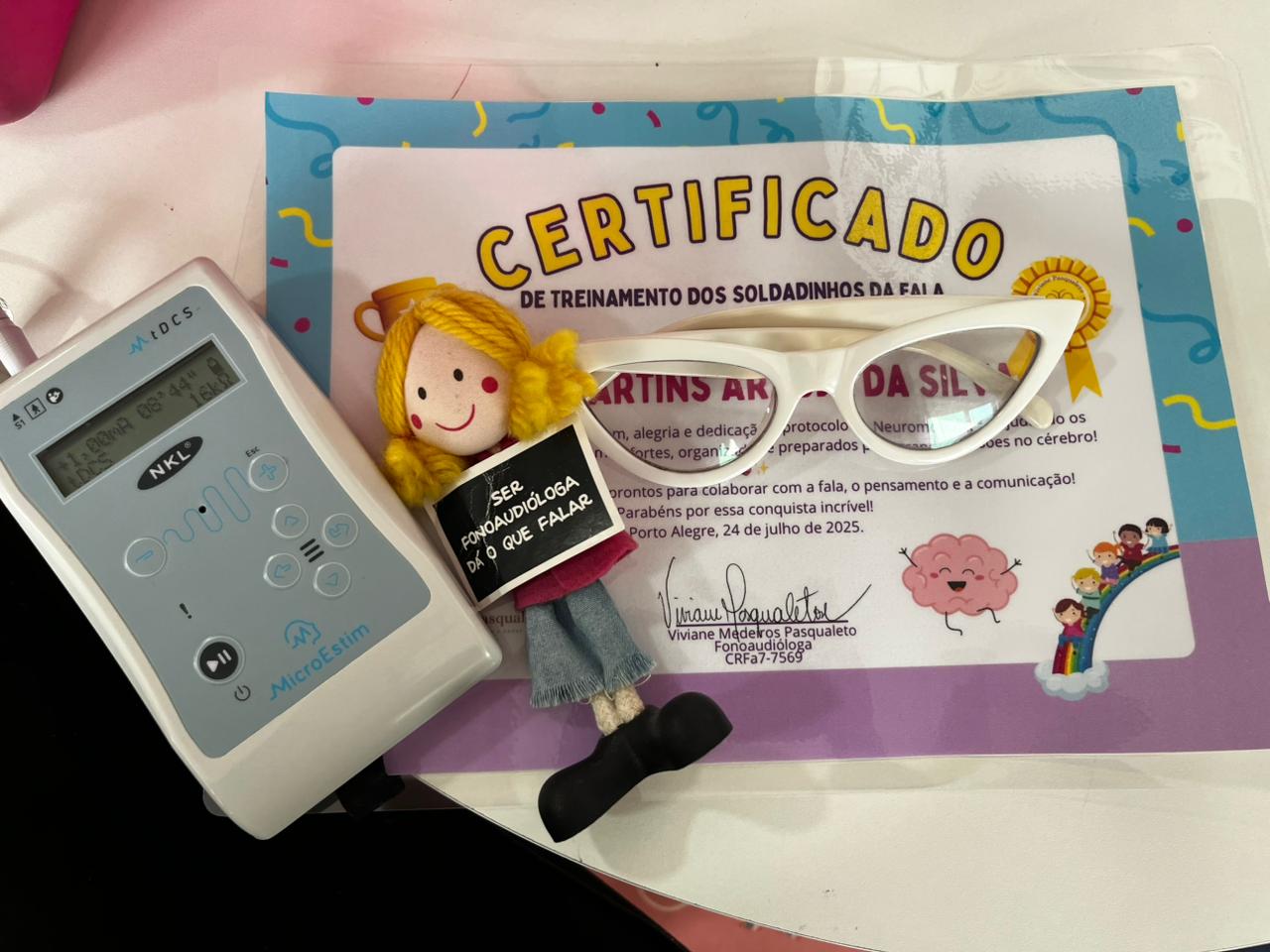 Cada sessão de fonoterapia dura em média 50 minutos, sendo 20 a 30 minutos destinados à aplicação da neuromodulação, realizada durante as atividades terapêuticas.